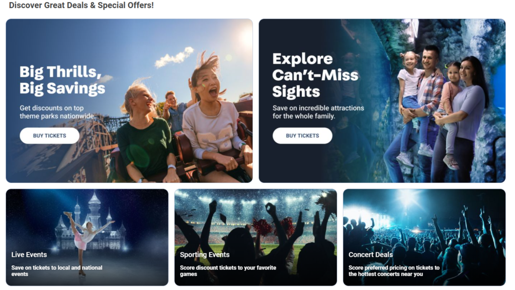 Unlock exclusive savings on the experiences and perks you love most, from concerts, sports, and theme parks to hotels, rental cars, and top destinations. Plus, enjoy fresh weekly deals across travel, shopping, and entertainment. Your everyday plans just got a major upgrade.